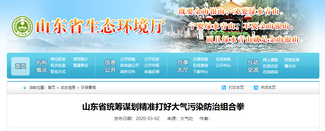 2020年是省委確定的“重點工作攻堅年”,也是打贏藍天保衛戰最后攻堅之年,為確保如期完成空氣質量改善目標,山東省生態環境廳注重統籌謀劃、精準施策,會同有關部門出臺系列文件,打好大氣污染防治組合拳。